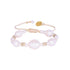 Una mezcla fresca de chaquiras Miyuki con perlas naturales y sintéticas, tejidas a mano con hilo de poliéster. Detalles con el logo de Mishky bañado en oro.