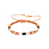 La combinación de cuero oscuro e hilos cálidos da lugar a un brazalete con una estética sobria y minimalista. Perfecto para llevar en capas con metálicos o solo para un look discreto.