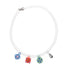 Collar de perlas con cierre tipo rosca y cuatro dijes con argollas removibles.