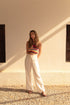 Pantalón versátil y cómodo de tiro alto con silueta recta. Color blanco y costuras color naranja. Diseñado y confeccionado en Colombia. DISPONIBLE BAJO PEDIDO.