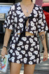 Set de top de amarrar y skort de cierre lateral. Su print es de Mini Flores de color blanco y negro. Diseñado y confeccionado en Colombia. Disponible únicamente bajo pedido.