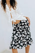 Falda larga con cierre lateral. Su print es de Mini Flores de color blanco y negro. Diseñado y confeccionado en Colombia.