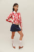 Mini falda color navy con pasadores en color café, cierre lateral y bolsillos traseros. Diseñado y confeccionado en Colombia.