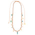 Con piedras semipreciosas, cuero y un aro bañado en oro, este collar reúne texturas naturales y tonos fríos, ideal para añadir profundidad a atuendos casuales o de estilo bohemio.