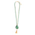 Una piedra de cuarzo drusa turquesa es el centro de este collar, suspendido de cadenas en bronce bañado en oro con cristales redondos. El tono azul vibrante aporta un acento llamativo a atuendos para clima cálido o looks en capas.