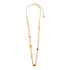Una explosión alegre de color con dijes de flor en baño de oro, perlas naturales y cadenas de bronce en capas. Tejido a mano con hilos de poliéster vibrantes, este collar aporta una elegancia lúdica a tus días soleados y noches cálidas.