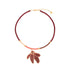 Una flor delicada en tonos vino. Con un dije de flor bañada en oro, hilo Silko suave y detalles pulidos, esta pieza añade un acento romántico a estilos del día a la noche.