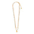 Este collar presenta chaquiras Miyuki verdes y cadena bañada en oro con un dije simbólico de ojo también bañado en oro. Una pieza sutil para protección diaria o para usar en capas.