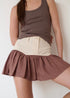 Falda corta de bloque de colores con cortes asimétricos. Diseñada y confeccionada en Colombia.