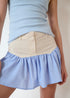 Falda corta de bloque de colores con cortes asimétricos. Diseñada y confeccionada en Colombia.
